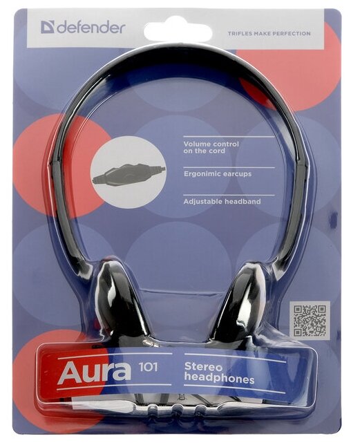 Headphones Defender Aura 101, on-ear, 85 dB, 32 Ohm, 3.5 mm, 1.8 m, black