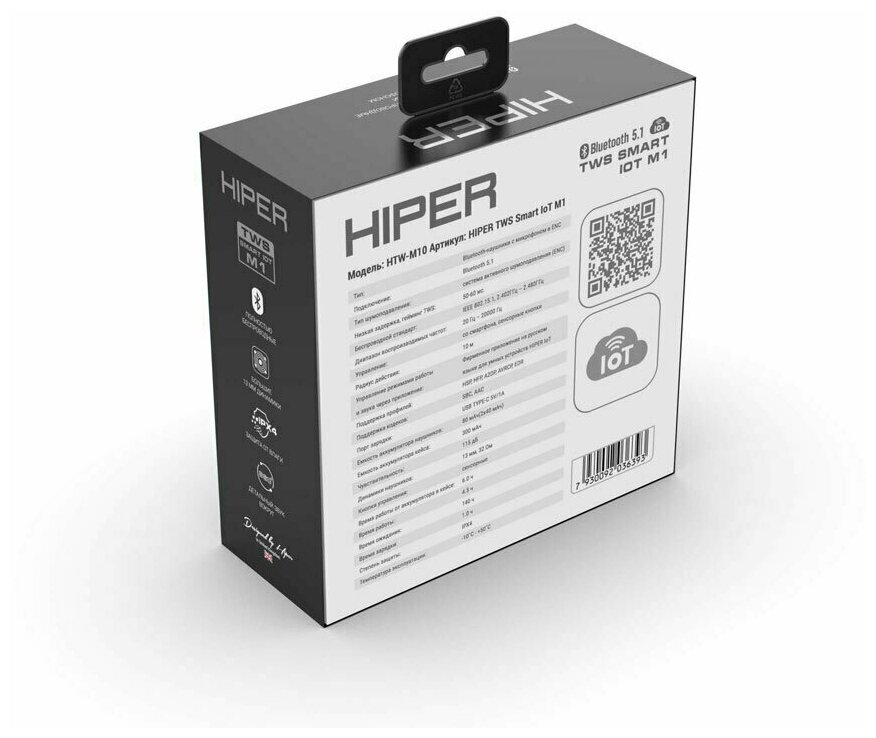 Headset HIPER TWS Smart IoT M1, Bluetooth, gray HTW-M10