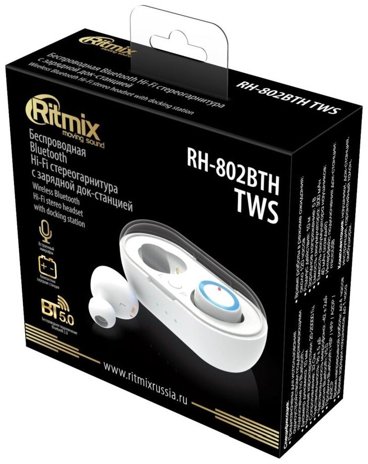 Design: in-ear, device type: wireless TWS headphones, design features: microphone, case charging type: micro USB, acoustic design type: closed, operating time: 4 h