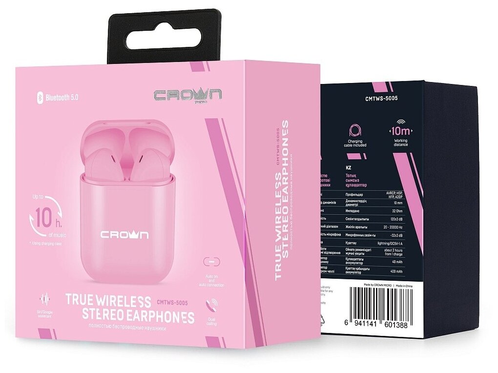Design: earbuds, device type: TWS wireless headphones, design features: microphone, acoustic design type: closed, functions: voice assistant call, operating time: 2 hours