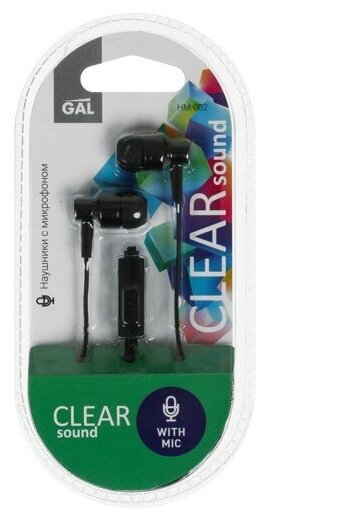 GAL Headphones GAL HM-002, vacuum, microphone, 95dB, 32Ohm, 3.5 mm, 1.2 m, black