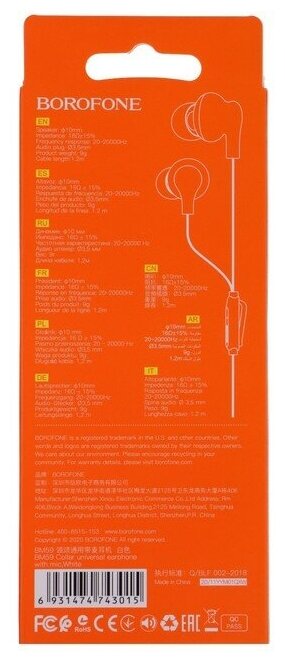 Headphones Borofone BM59 Collar, vacuum, microphone, Jack 3.5 mm, cable 1.2 m, white