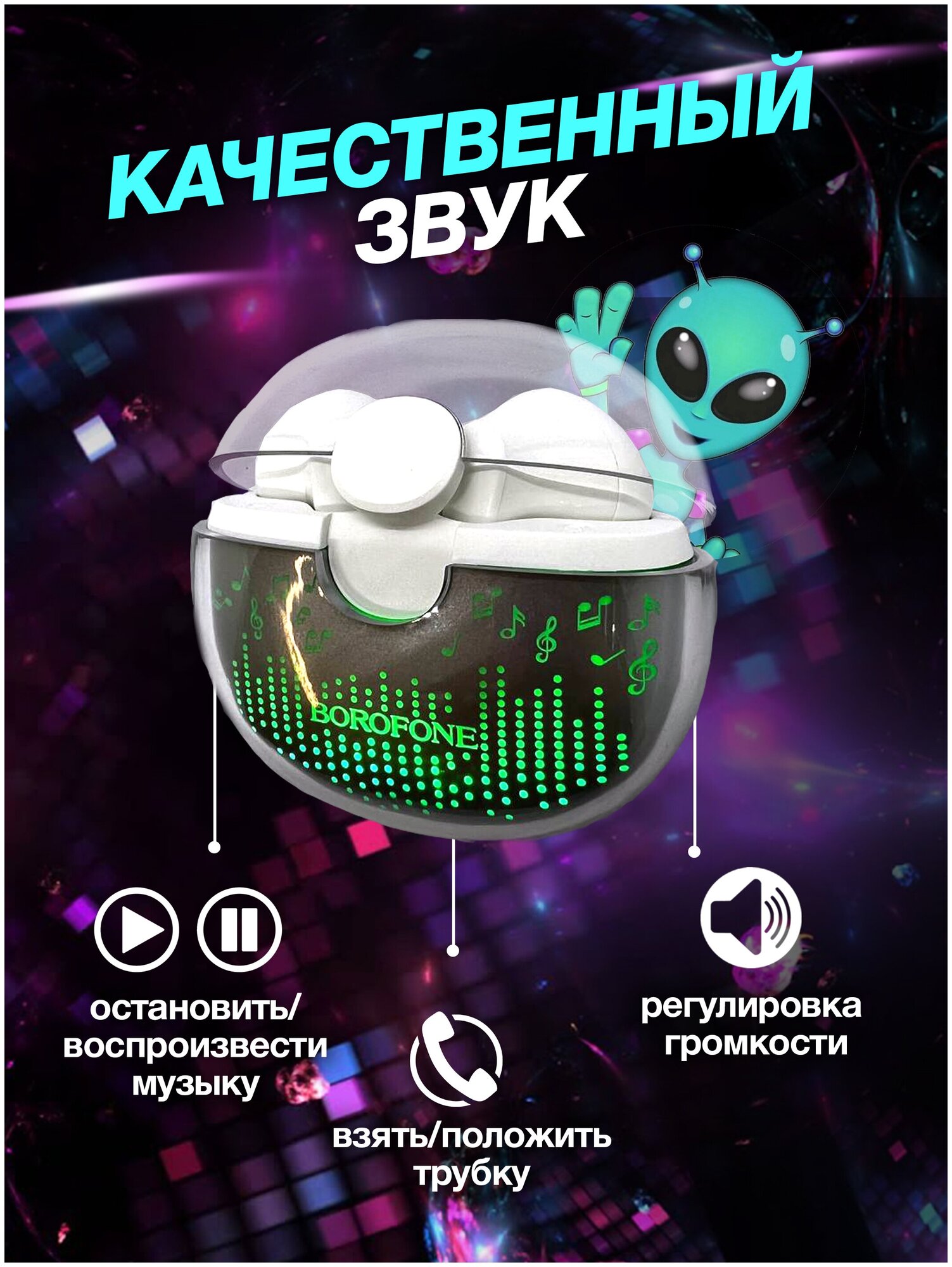 Design: earbuds, device type: wireless headphones, design features: for children, for sports, microphone, backlight, case charging type: USB Type-C, plug connector: microUSB, functions: voice assistant call,