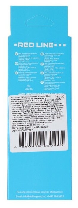 Headphones Red Line S1, vacuum, 116 dB, 32 Ohm, 3.5 mm, 1.2 m, white