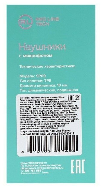 Headphones Red Line Stereo Headset SP09 Black UT000023418
