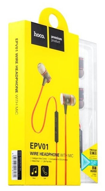 Design: in-ear, device type: wired headphones, design features: microphone, straight plug, plug connector: mini jack 3.5 mm