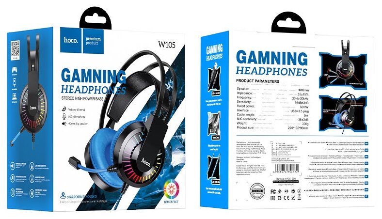 Headphones Hoco W105 full-size gaming headphones with MK with LED Blue