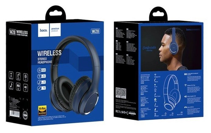 Headphones HOCO W28, wireless, full size, microphone, BT 5.0, 250 mAh, blue