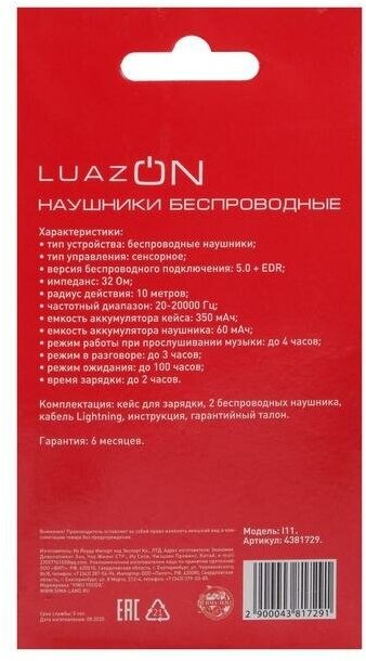 Design: in-ear, device type: TWS wireless headphones, design features: microphone, case charging type: Lightning, operating time: 3 h
