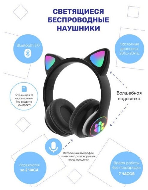 Design: on-ear, device type: wireless headphones, design features: backlight, functions: FM radio, MP3 player, surround sound, volume control, operating time: 4 h