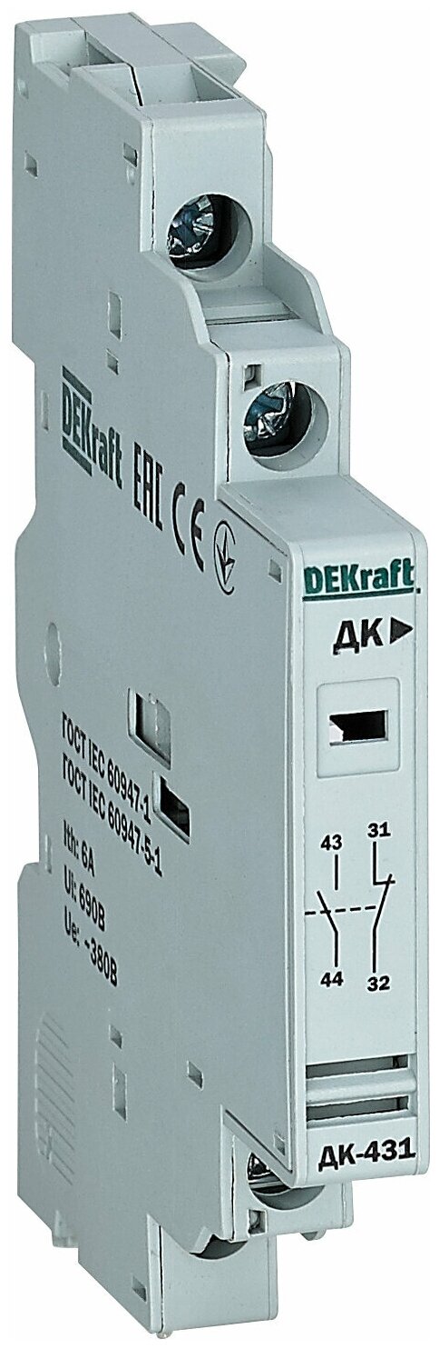 Description: Type: Circuit breaker, Number of normally open NO contacts: 1, Number of normally closed NC contacts: 1, Mounting method: side mounting