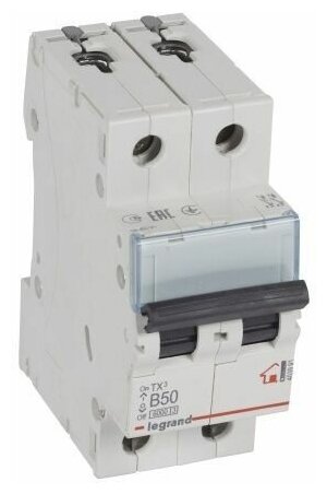 Legrand TX3 6000 - 6 kA - characteristic type B - 2P - 230/400 V - 50 A - 2 modules