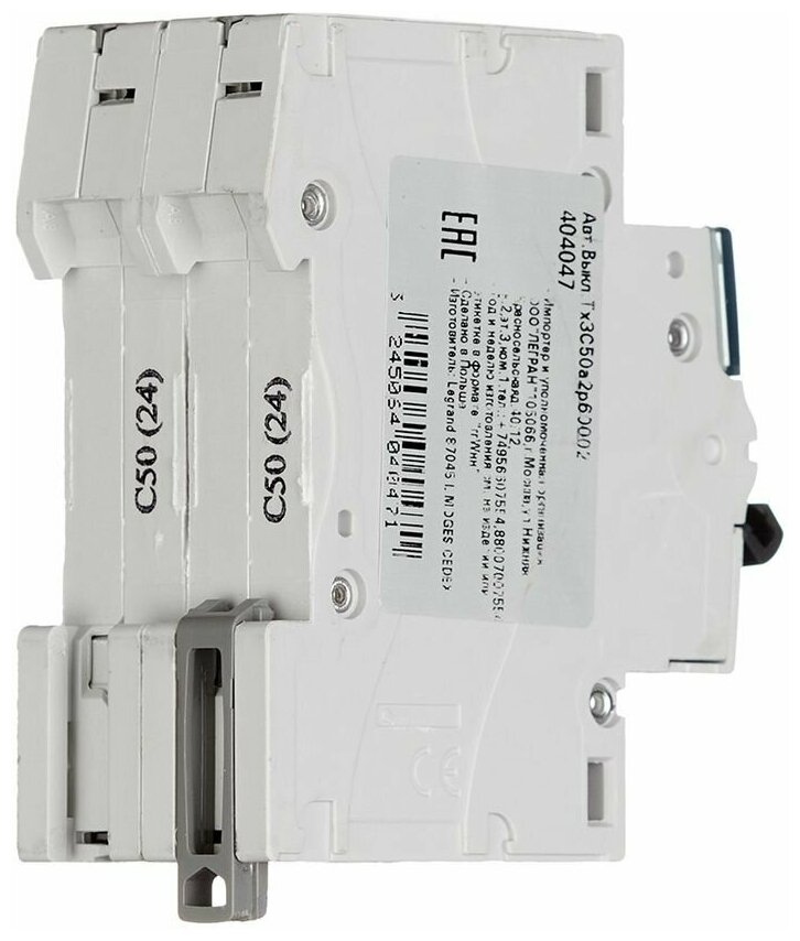 Legrand TX3 6000 - 6 kA - characteristic type C - 2P - 230/400 V - 50 A - 2 modules