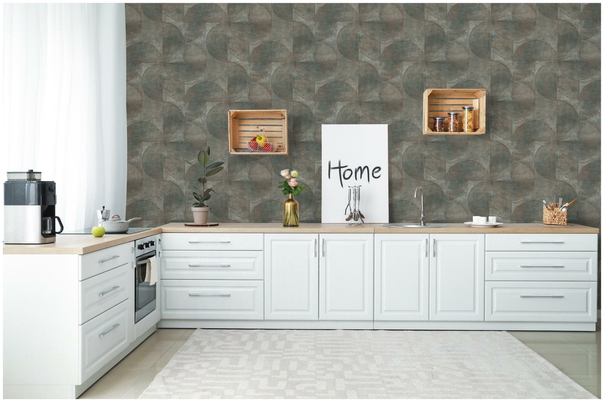 Type: decorative wallpaper, base material: non-woven, cover material: vinyl, wallpaper care: washable, pattern: geometric, circles, density: 120 g/m², type of vinyl wallpaper: smooth, series: Vintage