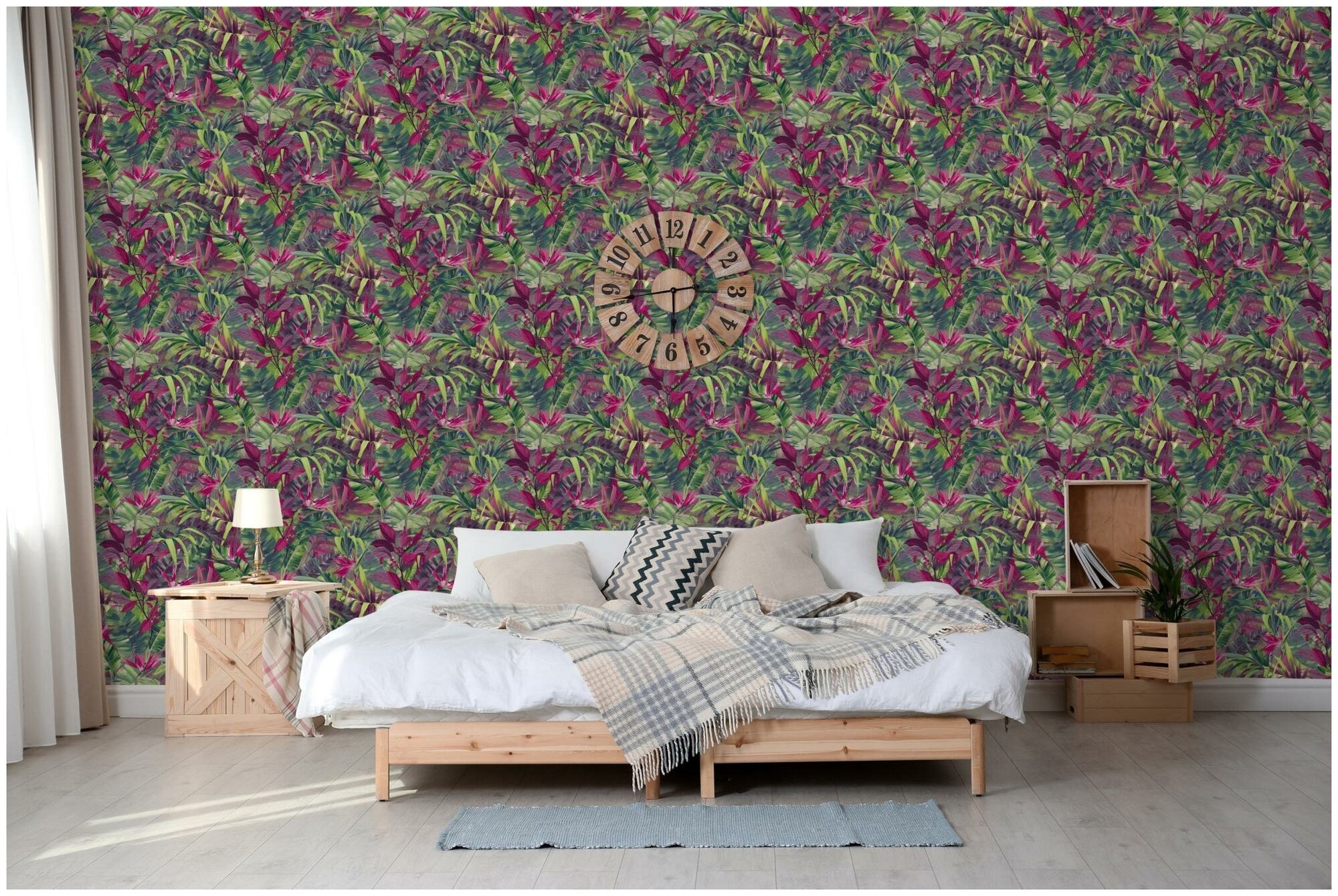 Type: decorative wallpaper, base material: non-woven, cover material: vinyl, wallpaper care: washable, pattern: floristry, type of vinyl wallpaper: hot stamping silk-screen printing, series: Jungle Fever