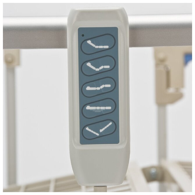 Product type: medical furniture, material: ABS plastic, steel, features: infusion stand, rotating wheels, locking brakes, pull-up stand, electric drive, folding side rails, adjustable height