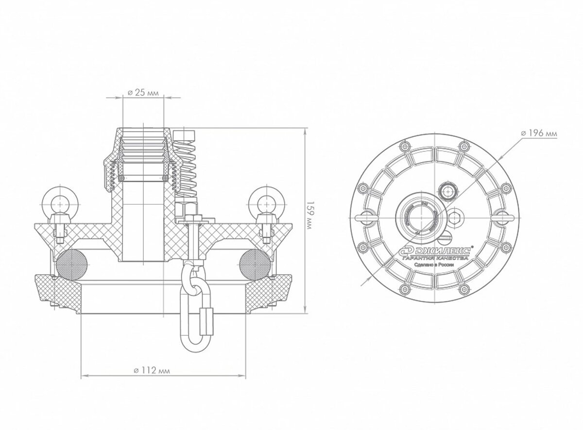 Type: cap, load: 200kg, material: plastic, minimum casing diameter: 90mm, maximum casing diameter: 110mm, minimum pressure pipe diameter: 25mm