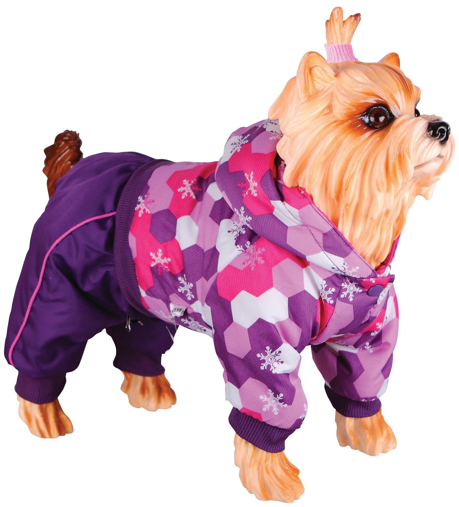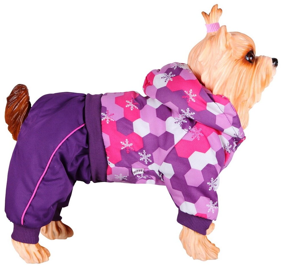 On synthetic winterizer, waist adjustment; recommended for breeds Basenji, Beagle, Bichon Frize, Bolognese, Welsh Terrier, Havanese, Griffon, Jack Russell Terrier, Cairn Terrier, Lhasa Apso,