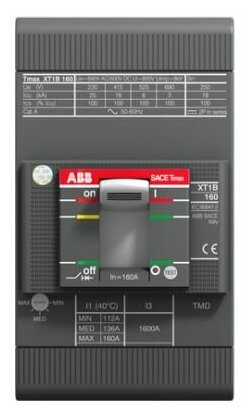 XT1N 160 TMD 100-1000 3p F F Thermal magnetic 3-pole 100A, 36kA ABB, 1SDA067416R1