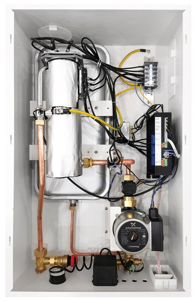 Air vent, built-in expansion tank, built-in circulation pump, pressure gauge, safety valve, thermometer, water filter