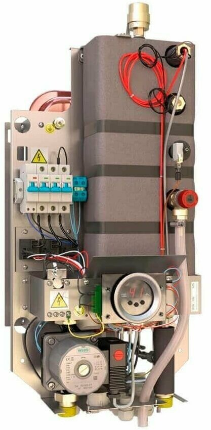 Air vent, built-in expansion tank, built-in circulation pump, pressure gauge, safety valve, connector for external control, thermometer