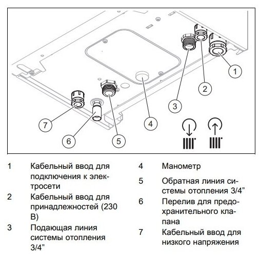 Type of heating boiler: electric, max. heat output: 28 kW, placement: wall-mounted