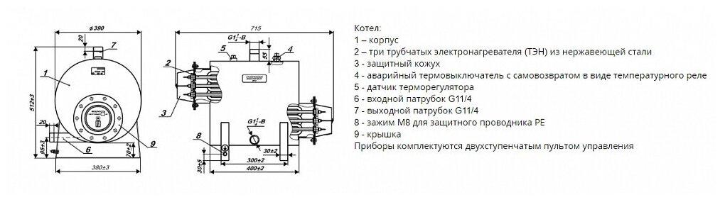 Heating boiler type: electric, placement: wall-mounted, power supply type: three-phase