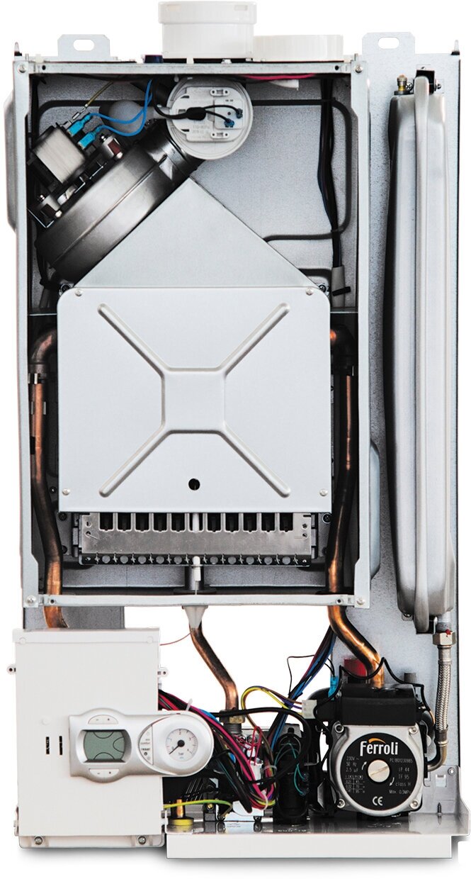 Air vent, built-in expansion tank, built-in circulation pump, pressure gauge, safety valve