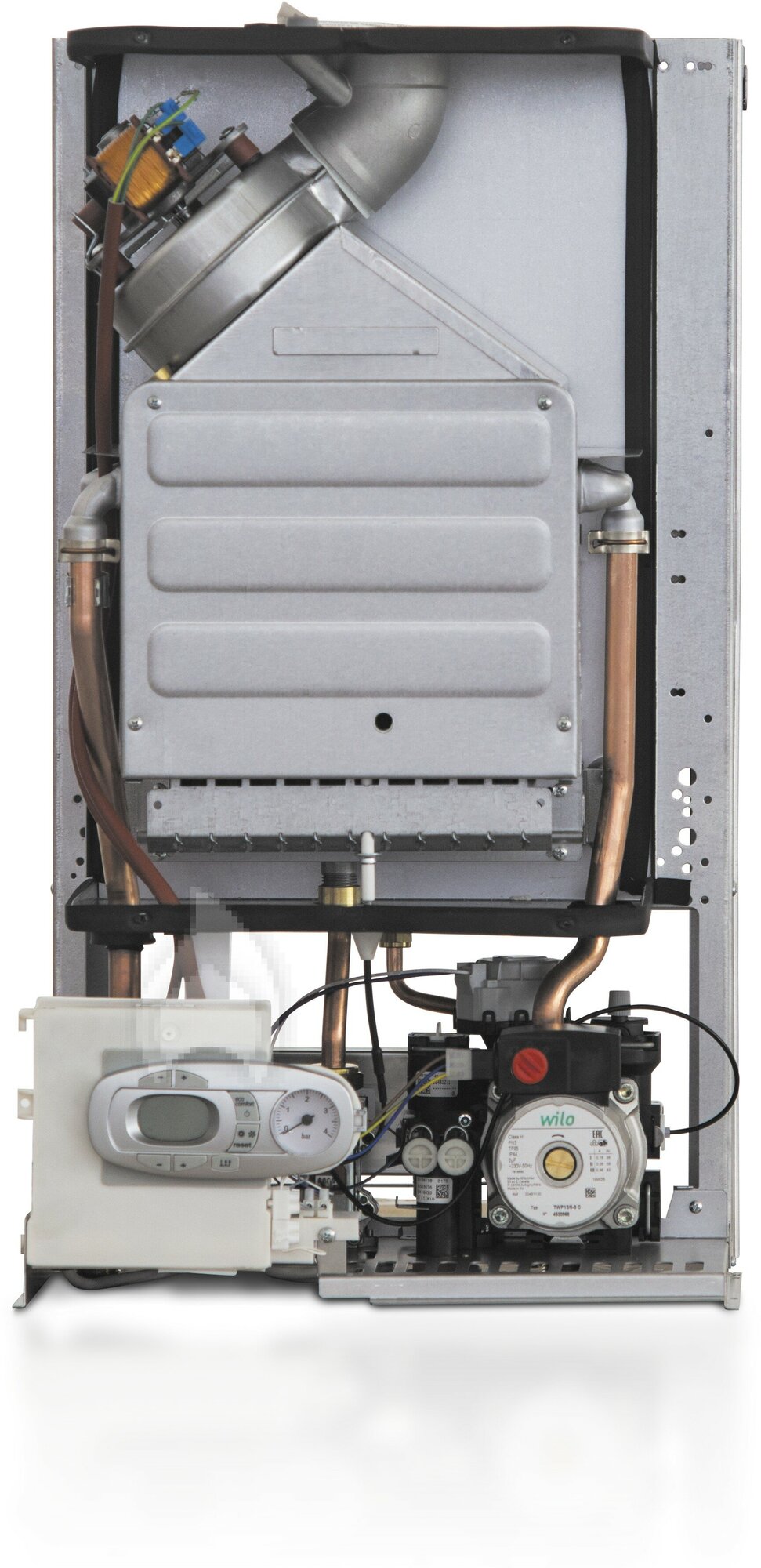 Air vent, built-in expansion tank, built-in circulation pump, pressure gauge, safety valve, thermometer