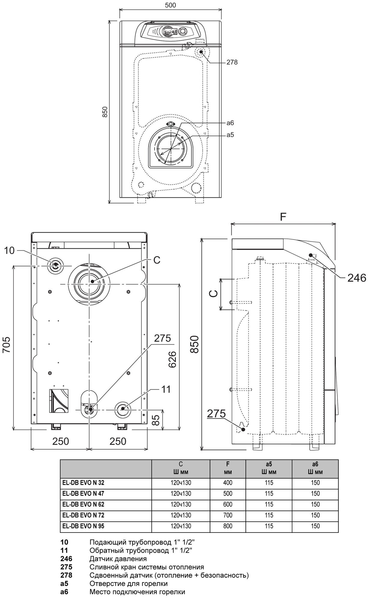 Type of heating boiler: gas, max. thermal power: 23 kW, number of circuits: double-circuit, placement: wall-mounted, fuel: natural gas, type of combustion chamber: closed, type of power supply: single-phase, control: electric