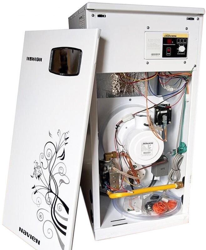 Type of heating boiler: gas, max. thermal power: 35 kW, number of circuits: double-circuit, placement: floor, fuel: natural gas, liquefied gas, type of combustion chamber: closed, type of power supply: single-phase, at