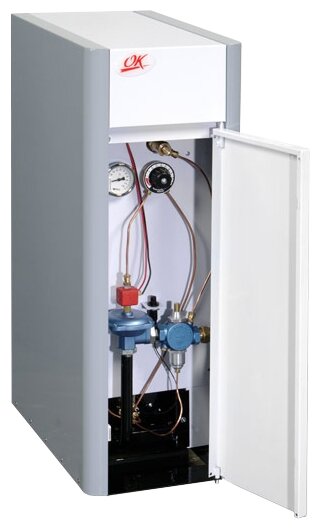 Type of heating boiler: gas, max. thermal power: 12 kW, number of circuits: double-circuit, location: floor, fuel: natural gas, liquefied gas, type of combustion chamber: open, control: mechanical,