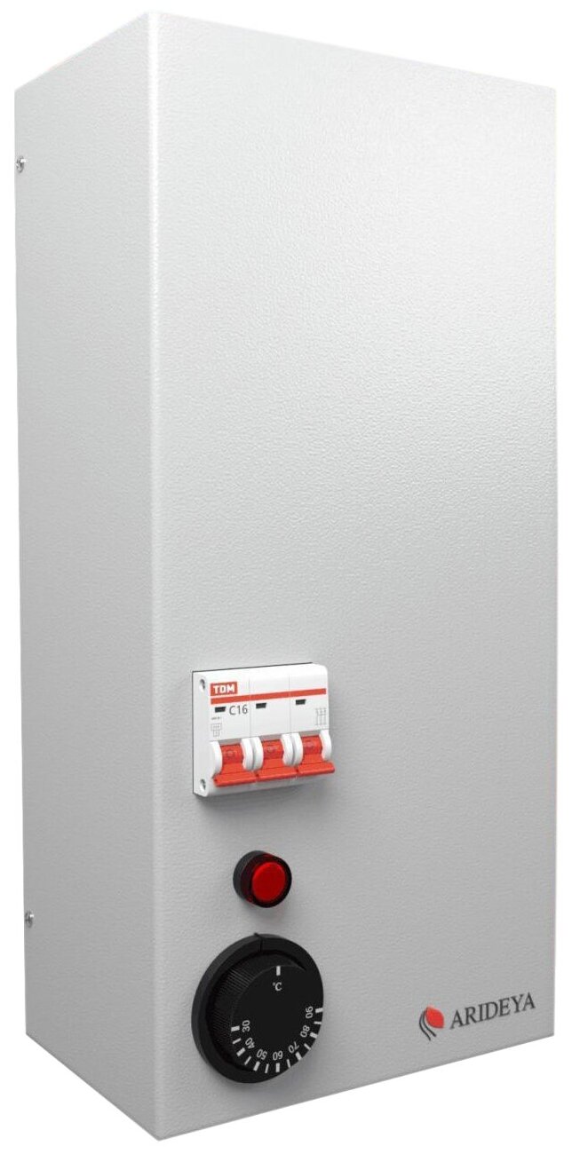 Type of heating boiler: electric, max. thermal power: 6 kW, number of circuits: single-circuit, placement: wall-mounted, type of power supply: single-phase, control: mechanical, principle of operation of the electric boiler: