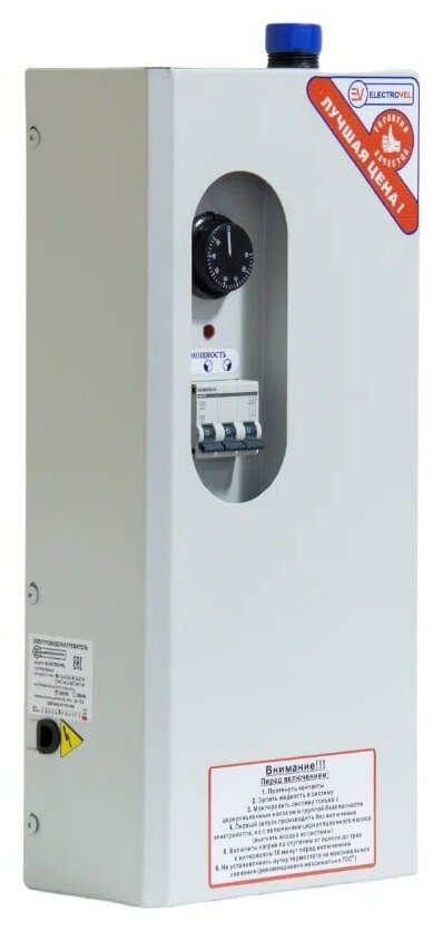 Type of heating boiler: electric, max. thermal power: 12 kW, number of circuits: single-circuit, placement: wall-mounted, type of power supply: three-phase, control: mechanical, principle of operation of the electric boiler: