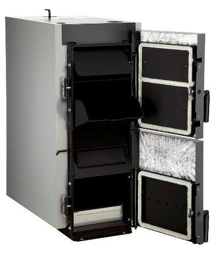 Type of heating boiler: solid fuel, max. thermal power: 22 kW, number of circuits: single-circuit, placement: floor, fuel: firewood, type of combustion chamber: open, control: mechanical, operating principle