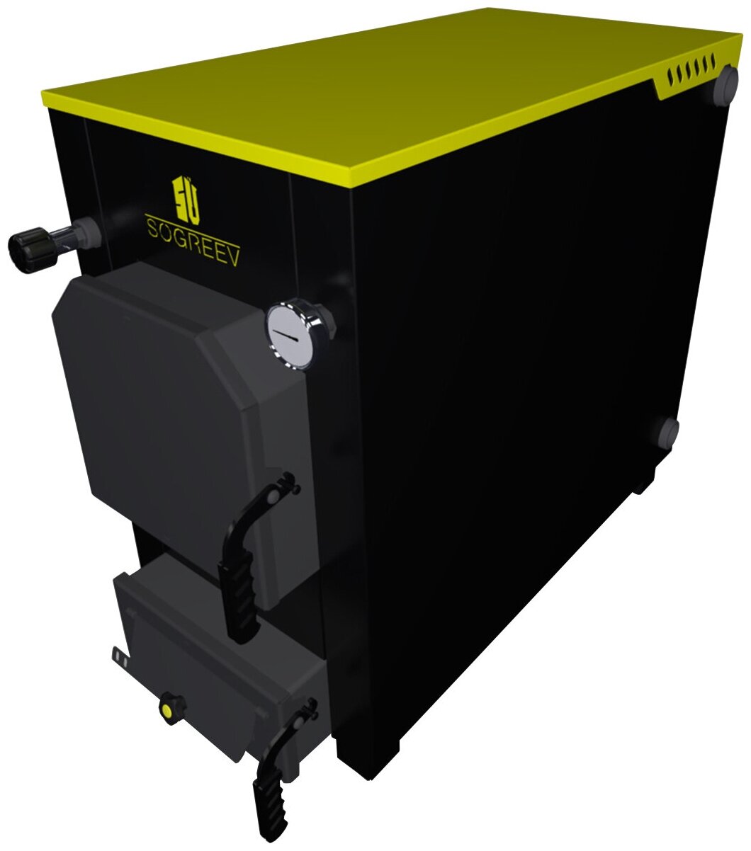 Type of heating boiler: solid fuel, max. heating power: 20 kW, number of circuits: single-circuit, placement: floor, fuel: wood briquettes, firewood, type of combustion chamber: open, control: mechanical