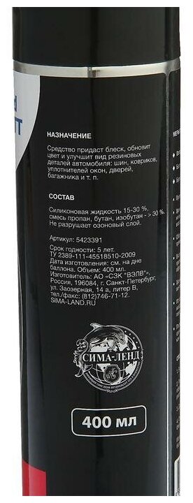 Type: polish, action: shine, features: spray application, base: silicone