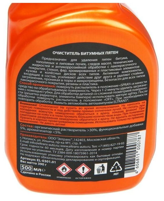 Type: body cleaner, purpose: from bitumen, from oil stains, from tar, spray, vehicle type: cars