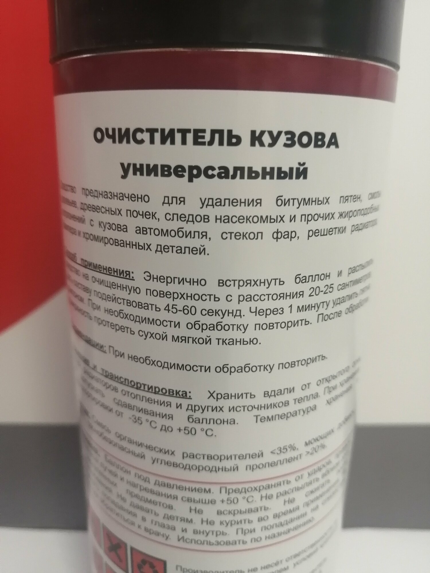 Type: body cleaner, purpose: from bitumen, from traces of insects, from tar, from poplar buds, aerosol, vehicle type: cars