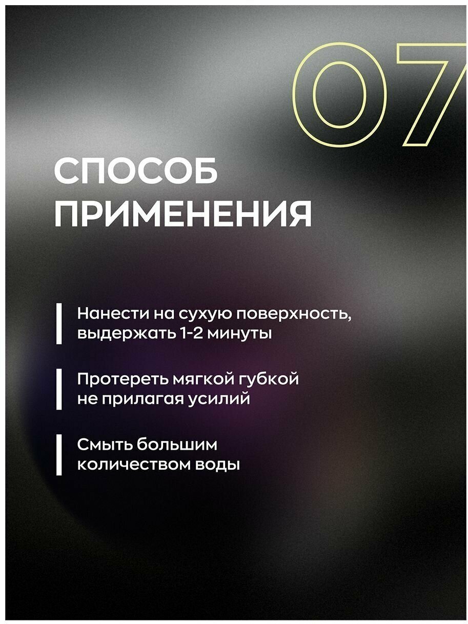 Clean the surface with car shampoo from dirt. Apply to a dry surface, hold for 1-2 minutes beforehand, it is necessary to check the compatibility of the product on an inconspicuous area. Wipe soft lips
