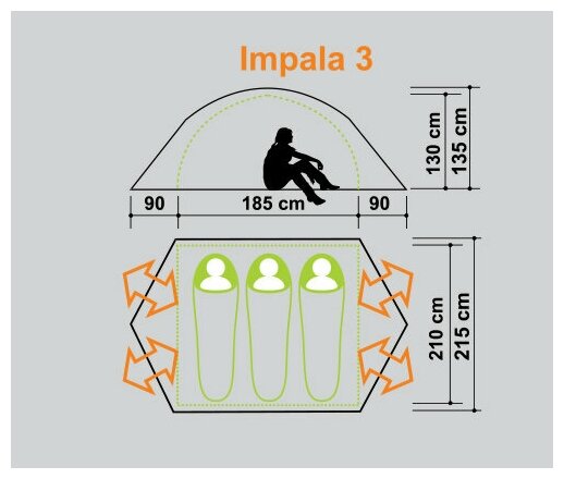 Purpose: trekking, number of places: 3, features: UV protection, ventilation holes, inner pockets, inner tent, fireproof impregnation, taped seams, build type: inner frame, water resistance