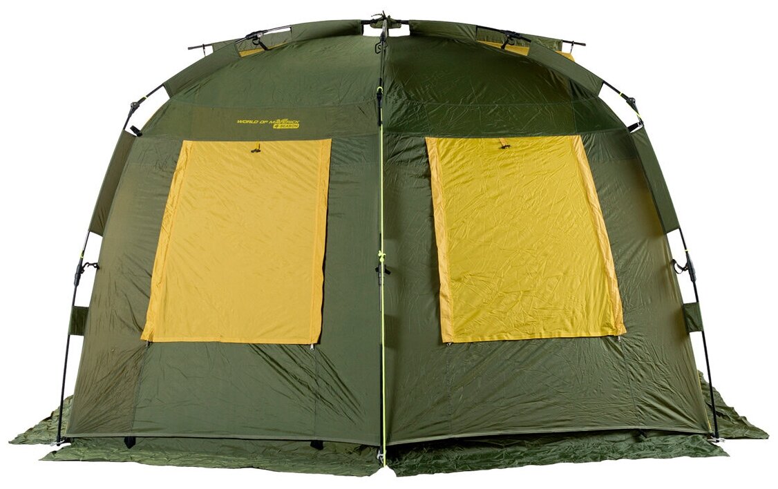 Purpose: camping, number of places: 4, features: UV protection, ventilation holes, wind / snow skirt, inside pockets, inner tent, canopy, taped seams, assembly type: outer frame