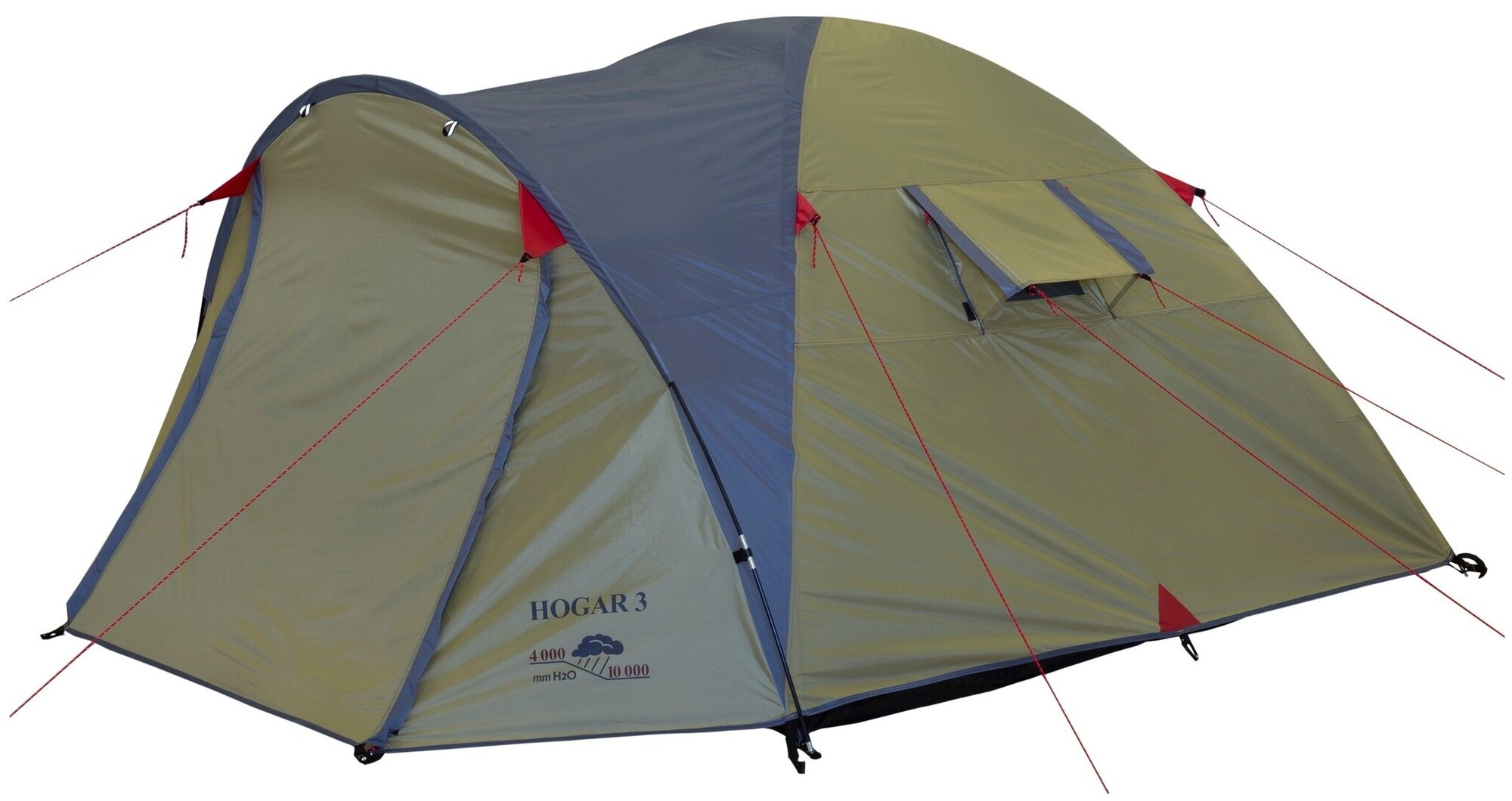 Purpose: trekking, number of places: 3, features: UV protection, ventilation holes, inner pockets, inner tent, canopy, fireproof impregnation, windows, welded seams, taped seams, awning, reinforced
