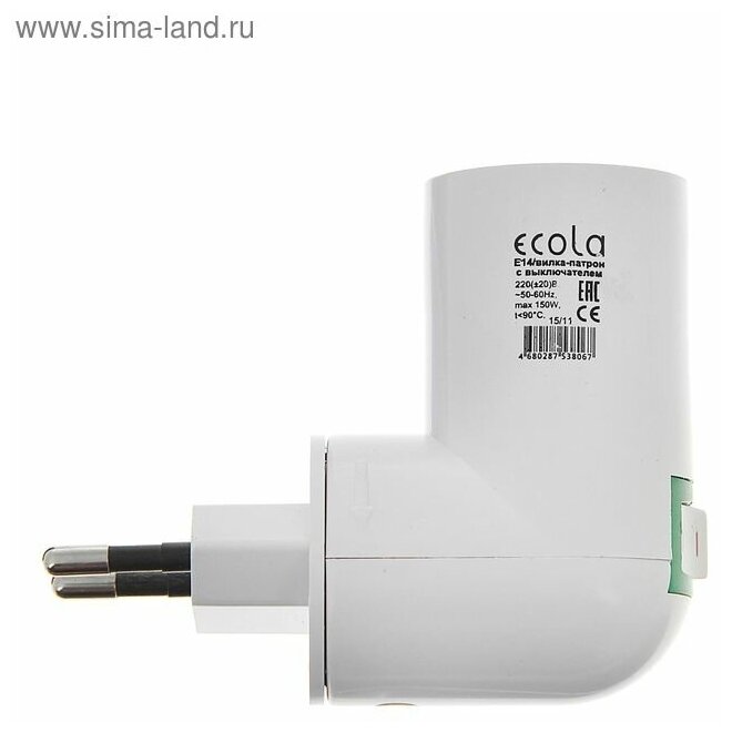 Ecola adapter, socket plug, E14, 60 x 83 mm, with switch, white