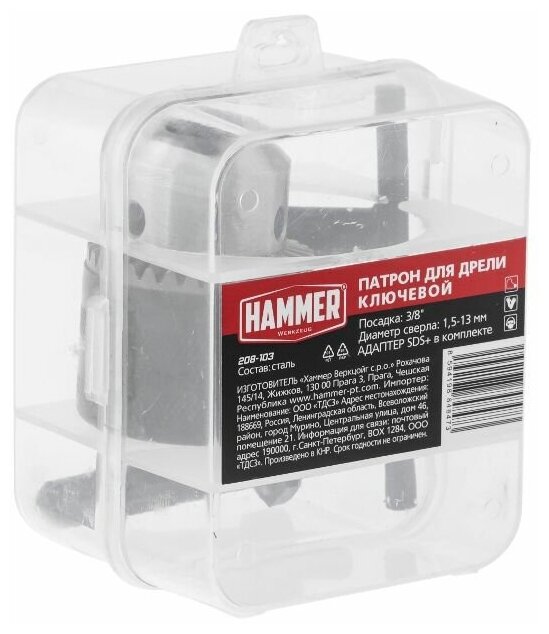 Type: chuck, chuck type: key, bore: 3/8, shaft mount: thread, chuck thread: inch, minimum shank diameter: 1.50 mm, maximum shank diameter: 13 mm, conversion to: SDS-plus, key