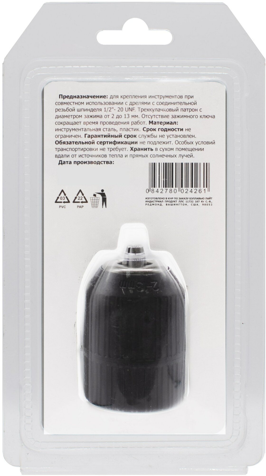 Type: chuck, chuck type: keyless, bore: 1/2, shaft mounting: thread, chuck thread: inch, maximum shank diameter: 13 mm