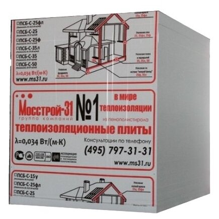 Material: expanded polystyrene EPS, length: 100 cm, width: 100 cm, thickness: 100 mm, packing area: 1 m², density: 25 kg/m³