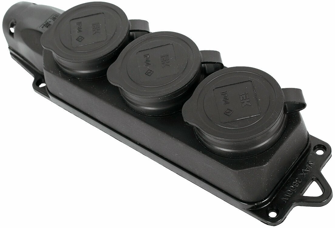 Type: block, Voltage, V: 220-250, current: 16 A, maximum power: 4000 W, phases: 1, grounding, number of sockets: 3 pcs., protective cover, dust and moisture protection class: IP44
