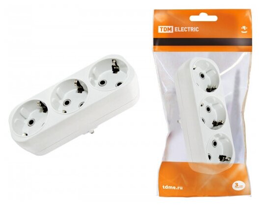 Tee, 3-way TDM, flame retardant ABS plastic, angled ergonomic sockets, rated voltage 250V, earth, load 3500W.