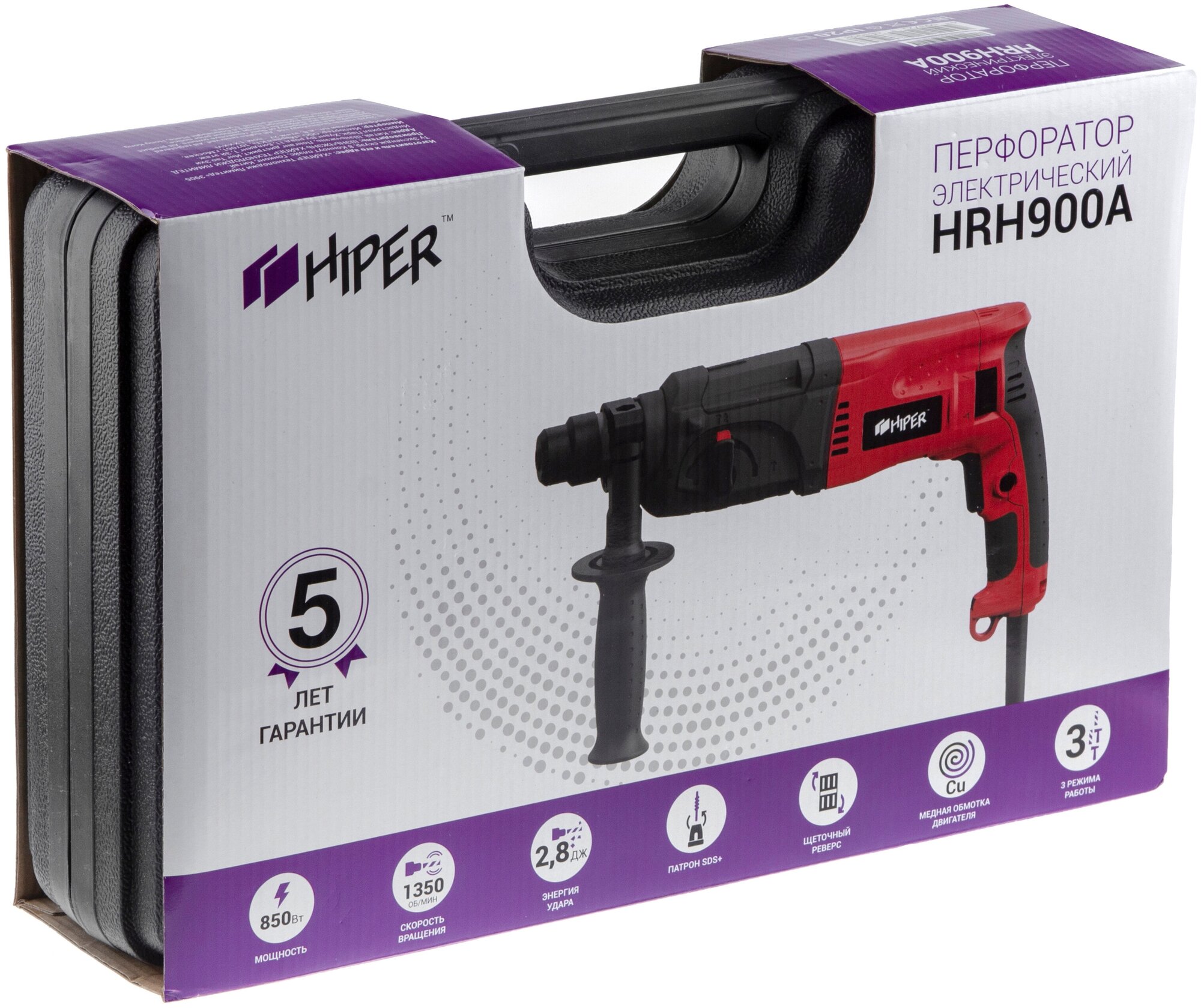 Additional handle - 1 pc., drilling limiter - 1 pc., drill 6 mm - 1 pc., drill 8 mm - 1 pc., drill 10 mm - 1 pc., pike - 1 pc., blade - 1 pc., instruction, warranty card, case